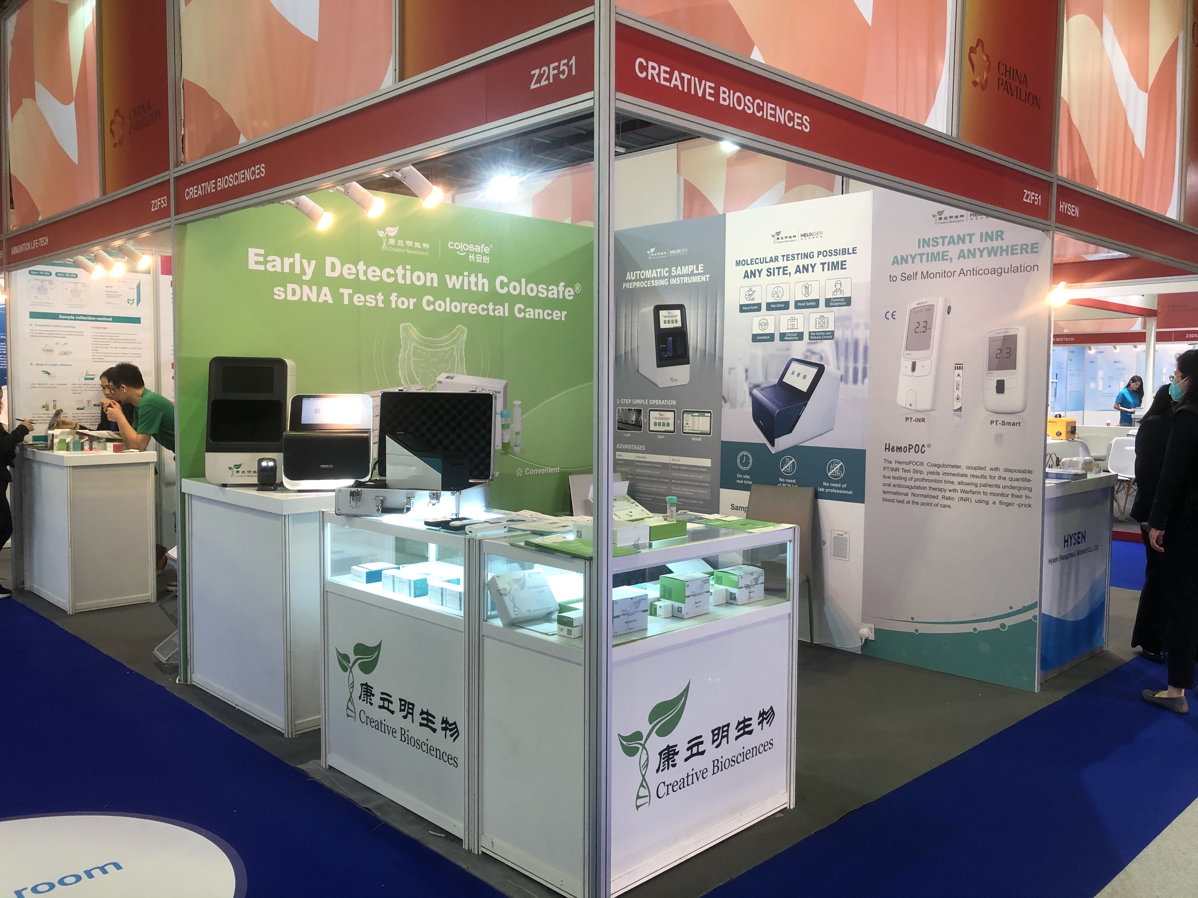 本次盛會,康立明生物攜長安心®糞便DNA腸癌檢測、久安心®膀胱癌基因檢測、會安心®肺癌基因檢測、全自動樣本預(yù)處理儀以及康立明全資子公司好芝生物產(chǎn)品HelixPOC®全自動微流控?zé)晒?/span>PCR一體機(jī)、HemoPOC®凝血檢測系統(tǒng)赴展。